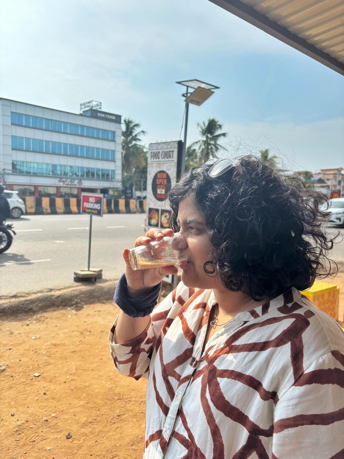 Meeting my Law college friends - at High Court Kerala (pics on left and right; with Namitha, Neethu and Bhagi); and roaming around Trivandrum to taste chai (centre).