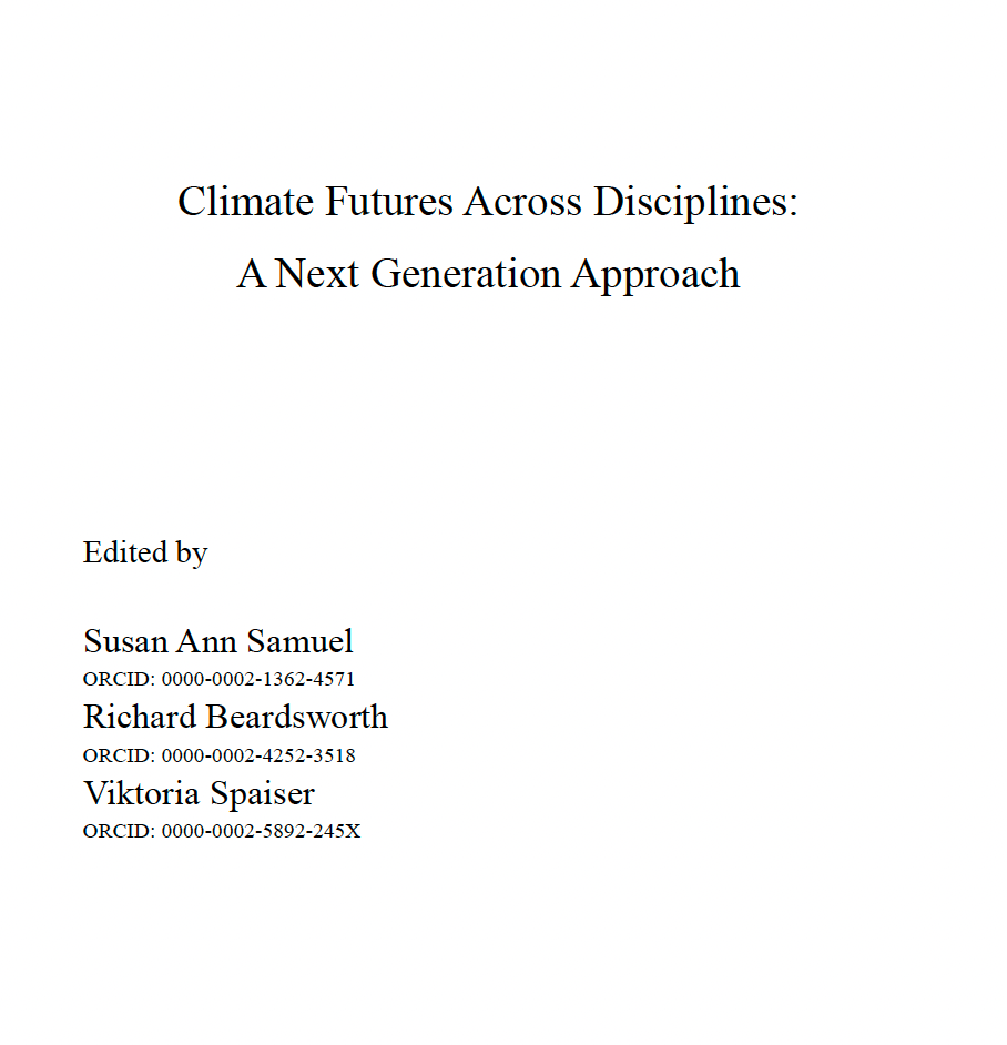 Expected outcomes: (1) An Edited Volume/Book: Climate Futures—A Next Generation Approach: Across Disciplines (2) A Symposium